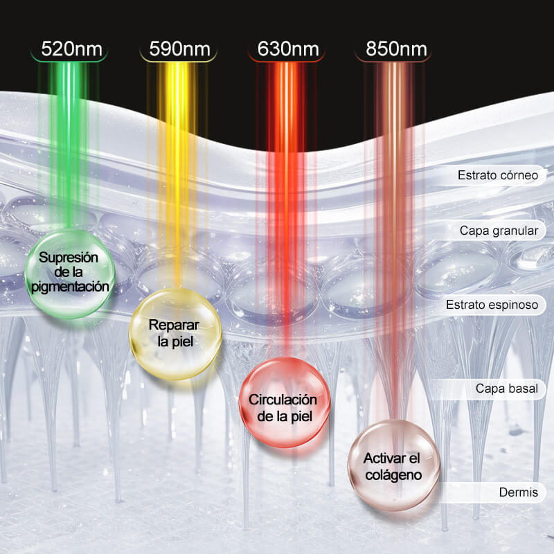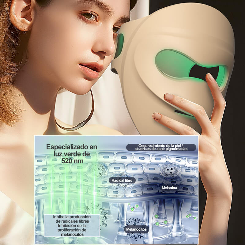 • Modo Aclarado & Anti‑Pigmentación: Luz verde 520 nm